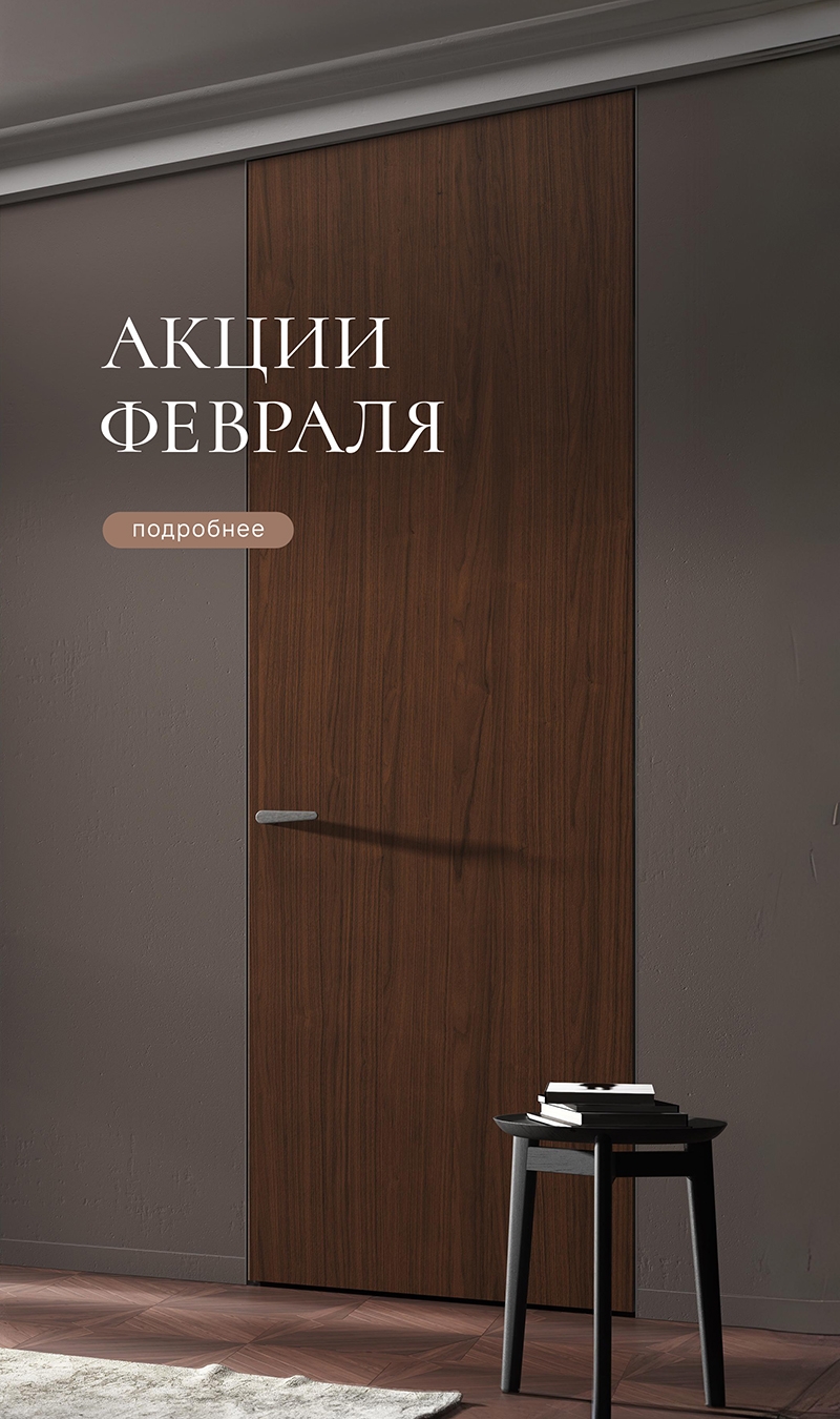 Дверь Волховец — полноценный элемент декора. Но ещё мы предлагаем комплексные интерьерные решения — стеновые панели, алюминиевые перегородки и мебель. Все наши изделия отлично сочетаются в одном интерьере.